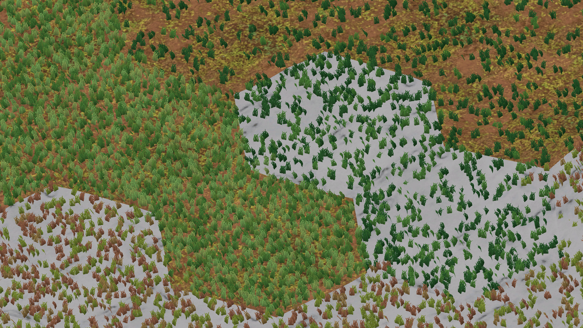 Same with the colors, the biome determines the amount of grass. Some planes are skipped to reduce the amount of grass in the cell.