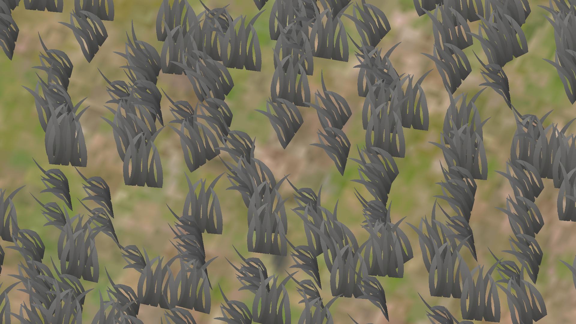 The top vertices of the planes are displaced using a pattern texture to create a wind effect.