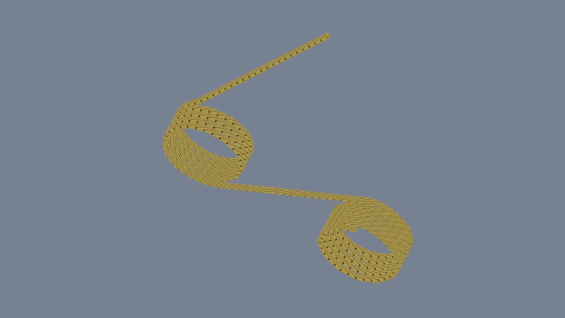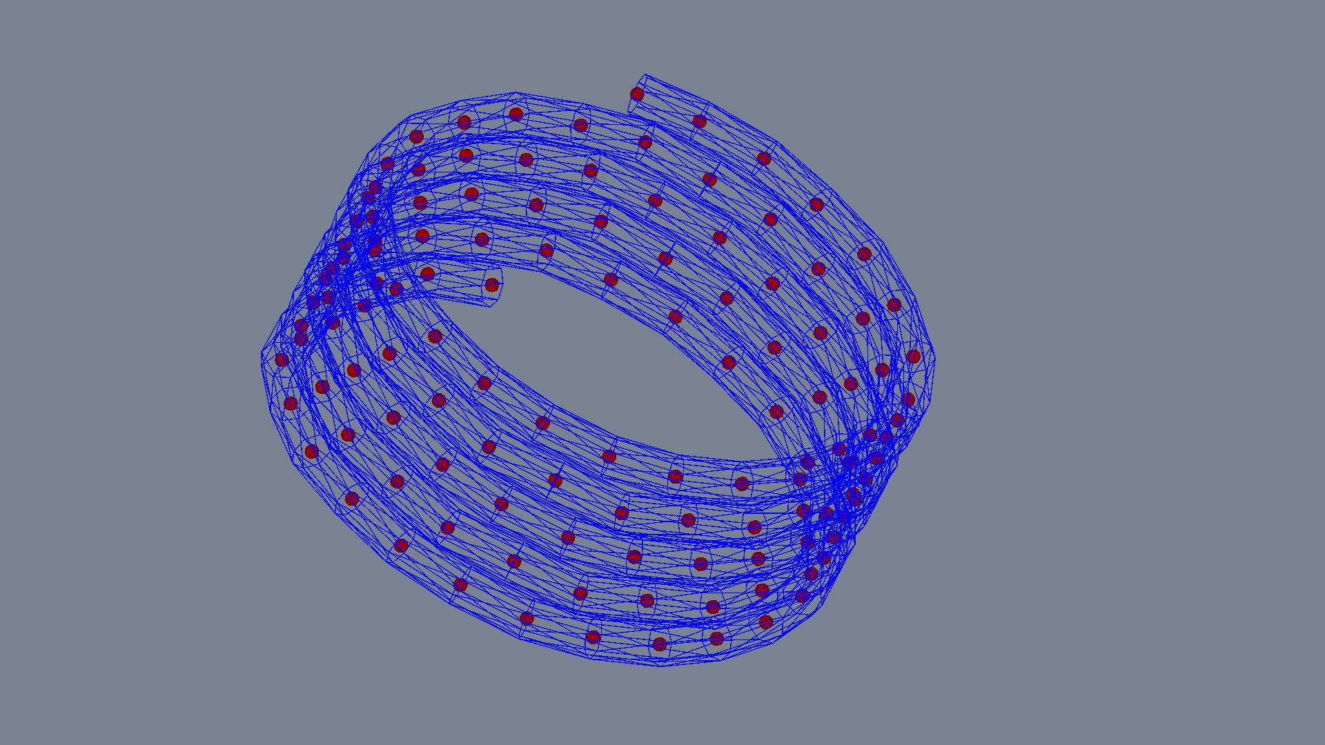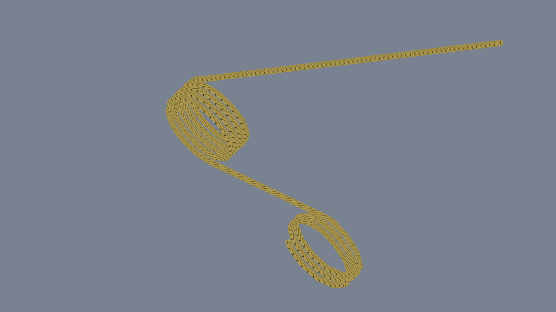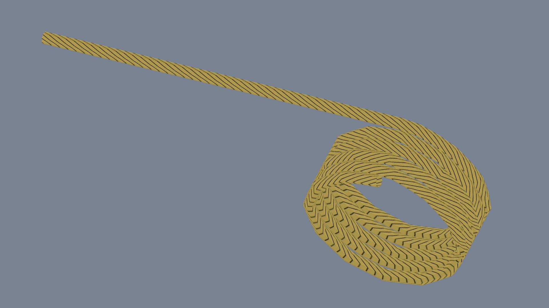 The vertices are calculated around each control point of the helix. The resolution and thickness of the rope is configured.