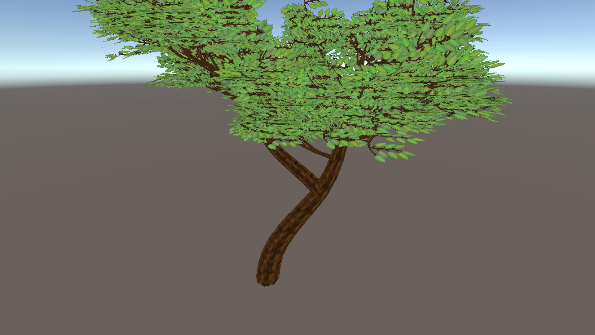 All starts with a trunk (or multiple) setting parameters like width, length and shape.