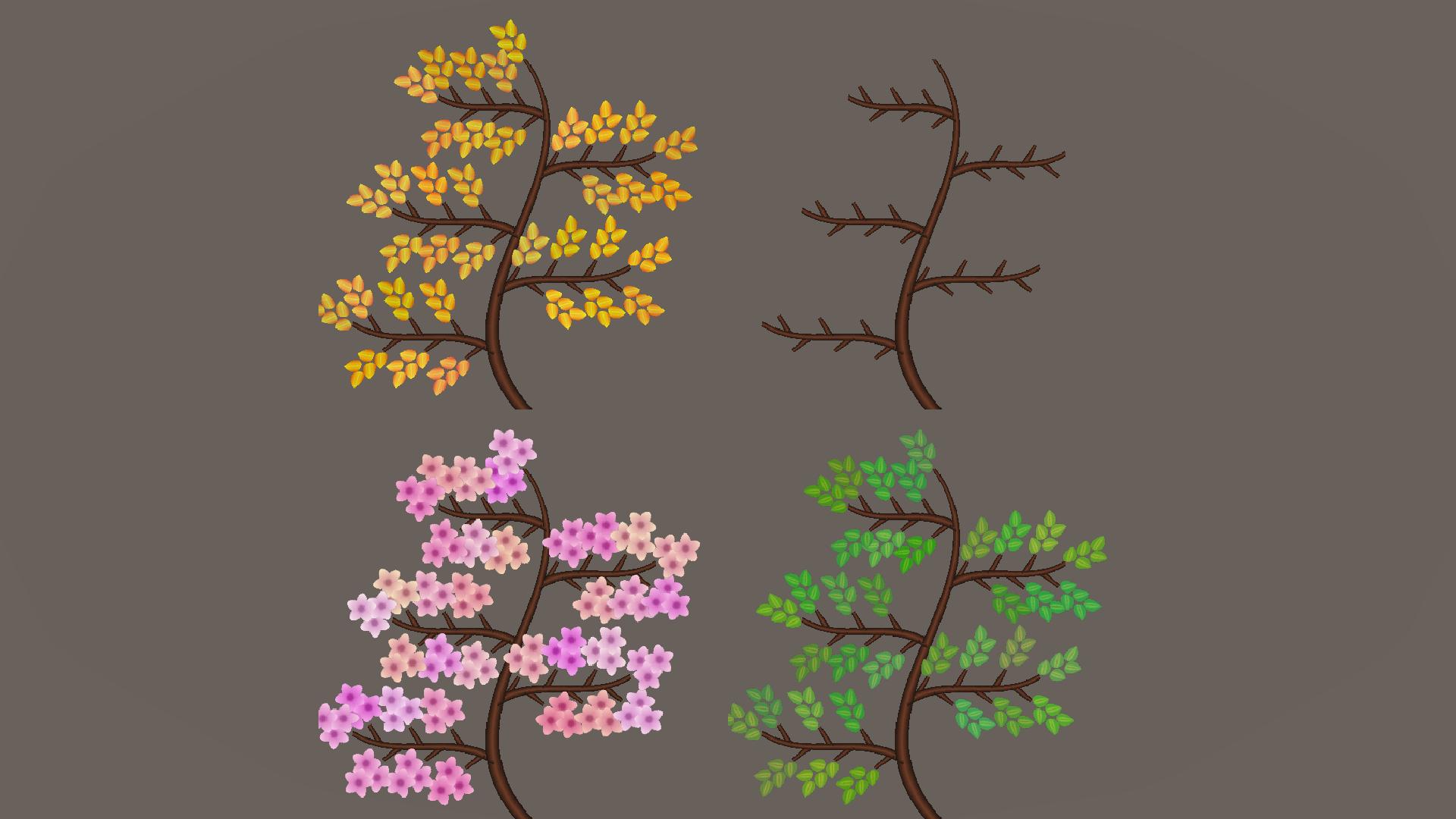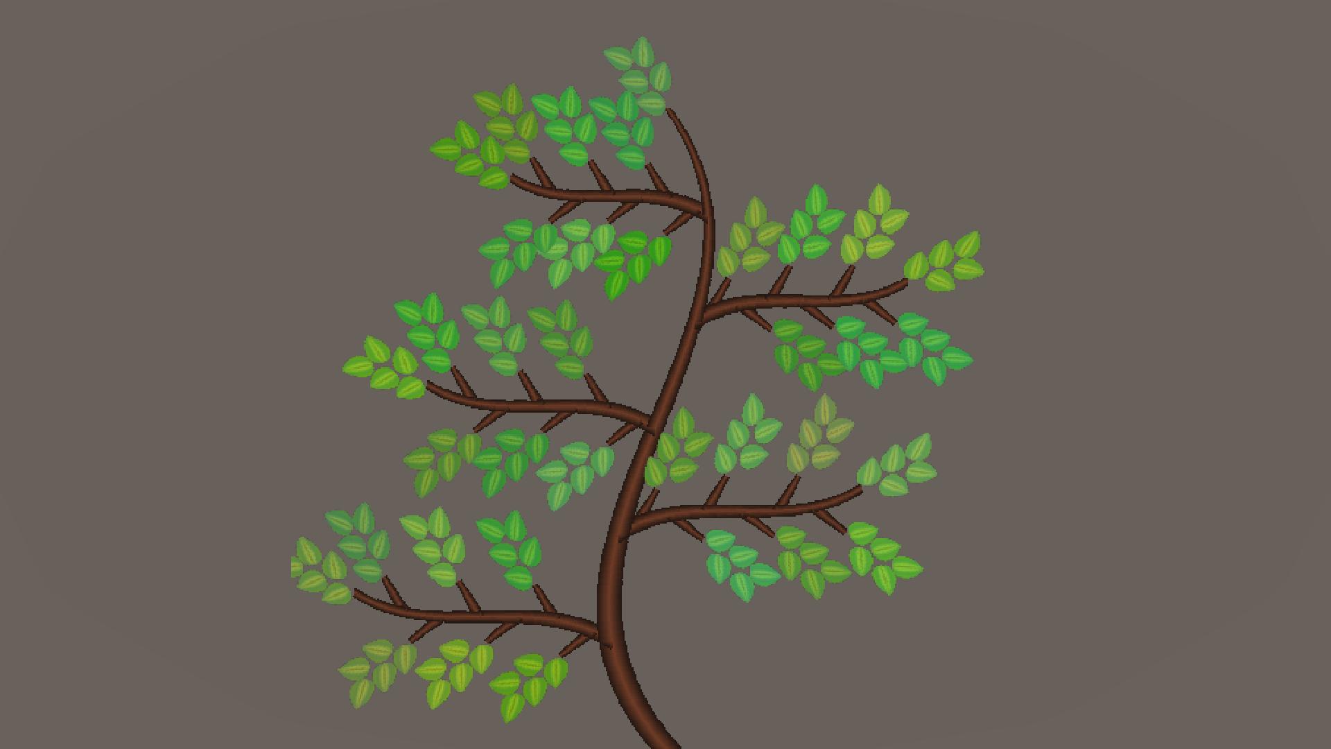 Next step is drawing the leaf texture (created externally) on each branch tip. To add variation, the colors of the leaves are subtly modified on each branch.